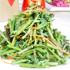蕨菜為蕨類植物蕨還處于卷曲未展時(shí)的嫩葉,蕨菜是野菜的一種。它所烹制的菜肴色澤紅潤(rùn)、質(zhì)地軟嫩、清香味濃,而且富含氨基酸、多種維生素、微量元素,還包括蕨素、蕨甙、甾醇等特有的營(yíng)養(yǎng)素,被稱為“山菜之王”,而且是不可多得的野菜美味。每100克的蕨菜熱量為39大卡。