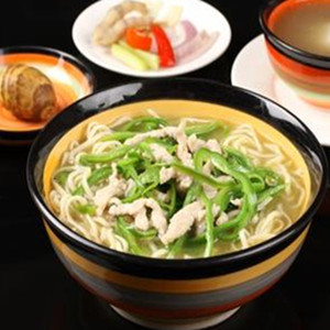 材料:青椒、瘦肉、面條