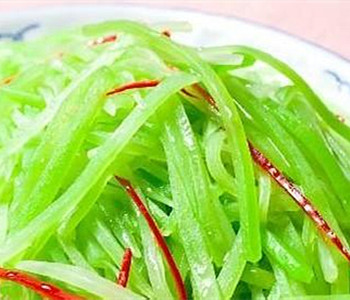 涼拌萵筍葉的特色:香辣涼爽,脆嫩可口。涼拌萵筍葉怎么做,如何做涼拌萵筍葉 萵筍取其葉洗凈,用開水焯一下,瀝出水分晾涼,切成絲裝盤,澆上用醬油、醋、白糖、香油調(diào)成的汁,再放點辣椒油拌勻即可。