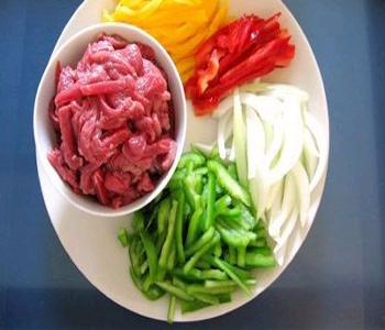 準(zhǔn)備材料:牛肉、青椒、洋蔥