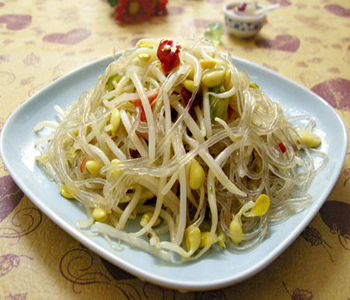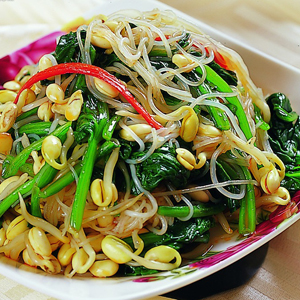 綠豆芽中含有豐富的蛋白質和多種氨基酸,粉絲則富有很高的熱量。所以這道菜也很適合青少年食用,可在其生長發(fā)育、新陳代謝方面發(fā)揮良好的作用。