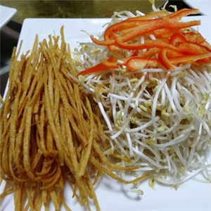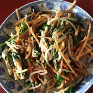 綠豆芽中含有豐富的蛋白質(zhì)和多種氨基酸,馓子則富有極高的熱量。所以這道菜也很適合青少年食用,可在其生長(zhǎng)發(fā)育、新陳代謝方面發(fā)揮良好的作用。