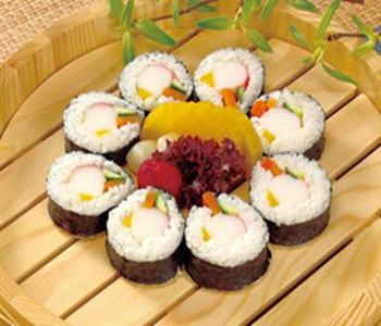 紫菜包飯是一道十分常見(jiàn)的韓式料理,與日本料理中的壽司十分相似。紫菜包飯其實(shí)是由日本壽司演變過(guò)來(lái)的。而日本壽司,大約在西元三世紀(jì)由中國(guó)沿海地方傳至日本,原先只是以鹽腌制的咸魚(yú),后來(lái)改為以米飯腌魚(yú),制成后將魚(yú)與米飯一起食用,這即是現(xiàn)今壽司料理的前身。雖然壽司最早來(lái)自中國(guó),但在千馀年發(fā)展之后,卻成為日本文化的代表之一。