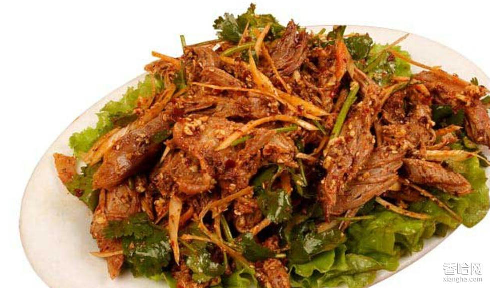 1、選肉。涼拌肉絲應(yīng)挑選飼養(yǎng)2—3年的狗宰殺,選擇肢肌豐富肉厚的新鮮后胯,以切出較好的形狀,燒出較好的味道。 2、生肉處理。將買來的肉先放入清水中浸泡。因宰殺狗皆為繩吊脖頸或棍棒擊頭而死,其血液留存在肉細胞中,通過浸泡,去除血污。浸泡時間約4—6個小時,其間換水3—4次即可。 3、煨煮。將泡過洗凈的狗肉剁成幾大塊,放入燒鍋中加水燒至滾沸,即將鍋中水全部倒掉,以去除土腥氣味。然后重新注入開水燒煮,作料的投入一般以一公斤狗肉,生姜20克,大料5克即可。煨煮時要把握火候,注意翻滾,總的原則是熟而不爛。先以大火燒煮20分鐘,改中火30分鐘,再以文火30分鐘,然后撈入漏勺待其自然涼卻。4、半成品加工。將冷卻后的狗肉剔骨,冷卻后的狗肉收縮了水分,肉質(zhì)嚴實,不相互粘連,易于取肉切絲。因狗肉韌性較強,故切絲時刀與肉的紋路成20度角,力爭切細。5、涼拌裝盛。將大蔥絲、大蒜泥、辣椒粉、花椒粉、精鹽、味精、麻油等作料拌入肉絲盛在盤中。色、香、味、美、形全有了。在寒冬的季節(jié)夾上一口菜,再喝上一口酒,雖涼爽爽但頓覺周身暖意融融。簡直美極了。