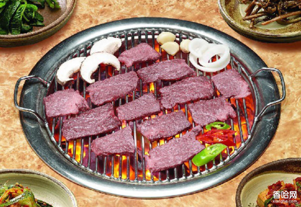 將新鮮牛肉去筋膜、脂油,切成肉片,加醋、醬油、蒜末、白糖、胡椒粉、味精、香油拌勻,另備醬油、辣椒末、白糖、白醋、香萊末、大蒜調味品分裝于小碗,炭火爐放于桌心,上放鐵箅子,用筷子夾肉片放在箅子上燒,蘸調料后食用,外焦里嫩、酥香咸辣。