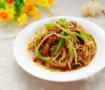 現(xiàn)在社會(huì)提倡食用天然健康的食物,綠豆芽是近年來被自然食用主義者推崇的一種食品,清脆爽口,做起來也方便,最重要的是它清熱解毒,對(duì)身體健康非常有好處,也不會(huì)發(fā)胖。綠豆芽這樣上好的清熱解毒的蔬菜,加上富含動(dòng)物蛋白和營(yíng)養(yǎng)的肉絲,可謂葷素搭配、相得益彰。那么具體的過程應(yīng)該怎么做呢?
