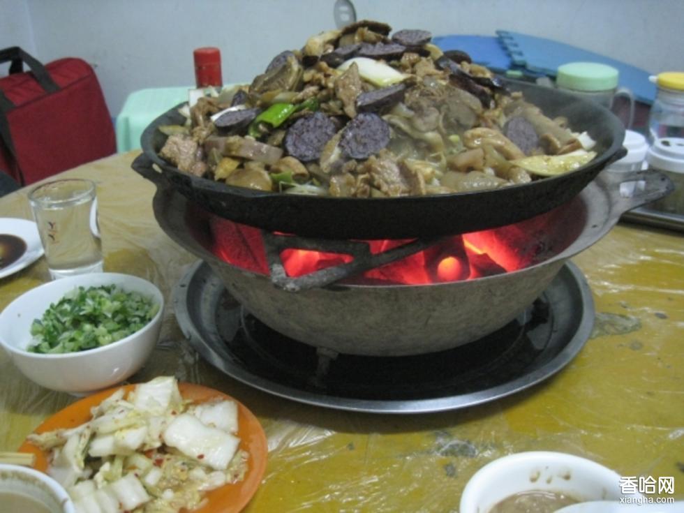 這是最具特色的自助式風(fēng)味小吃,將炭火放入立式火爐內(nèi),上面罩上一個(gè)鐵絲網(wǎng),將拌好料的食品(牛、羊肉,板筋、雞翅、魚、土豆片等)直接放在明火上燒烤,用蘸料,配上芝麻醬、孜然、辣椒面、白糖、鹽、味精等輔料。吃起來(lái)香氣誘人,具有朝鮮族特色風(fēng)味。