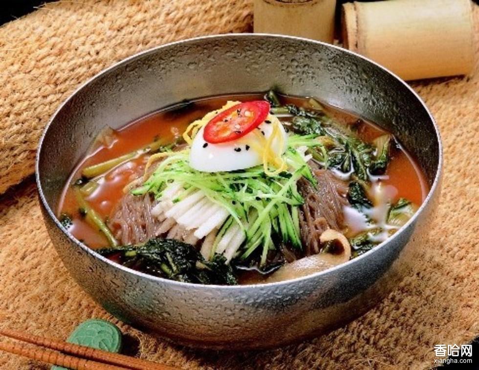 面條類食品在朝鮮語(yǔ)中叫做“股細(xì)”(挺形象說的~活活),冷面通常是用小麥粉加上蕎麥面或玉米面制成,配上清湯或葷湯,再加上辣醬、辣椒油、泡菜、芝麻、水果等等作為拌料。冰涼清淡、酸辣爽口,很是招人喜歡。