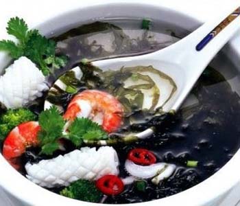 此湯含有極豐富的礦物質(zhì),每百克含鈣343 毫克,磷457 毫克,鐵33.2 毫克,碘1.8 毫克,具有化痰軟堅(jiān)、清熱利水、補(bǔ)腎養(yǎng)心的功效。適用于甲狀腺腫、水腫、支氣管炎、咳嗽、腳氣、四肢俘腫、高血壓等病癥。健康人食用能增強(qiáng)智力,精力充沛,養(yǎng)顏明目,烏發(fā)。