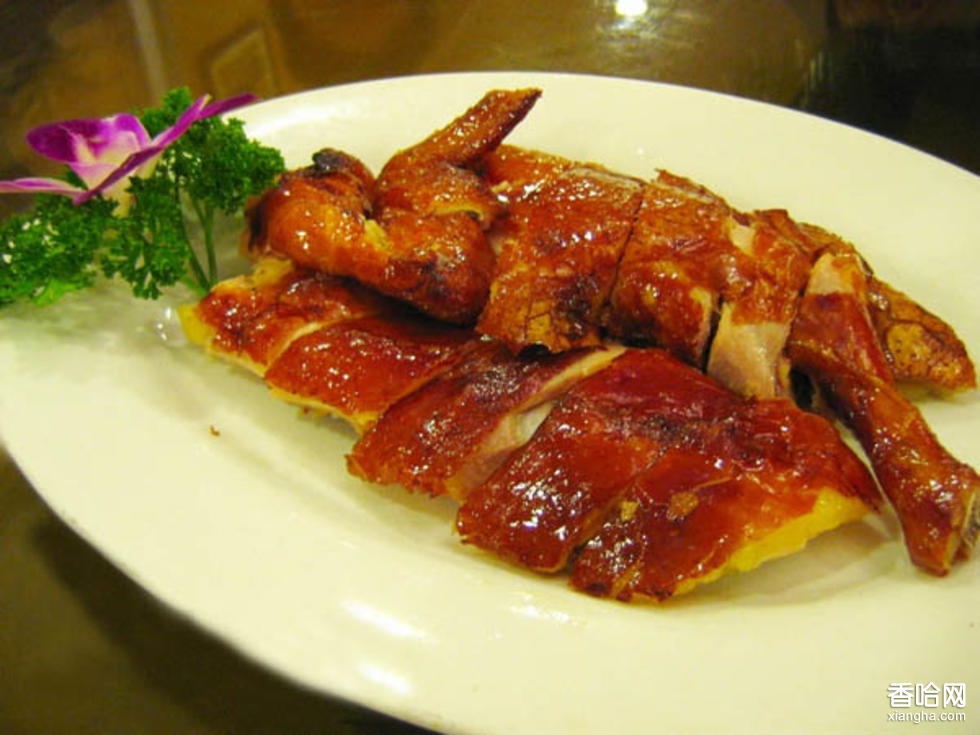 5.熏制:將煮熟的雞撈出,晾涼后即可熏制。熏烤時,熏鍋的溫度為120℃左右,白糖分兩次放入鍋底,每7.5千克熟雞,每次放白糖50克。將雞放鐵箅子上,加鍋蓋后每次熏烤約30秒鐘。熏好的雞,雞身外涂香油或熟豆油后即可食用。