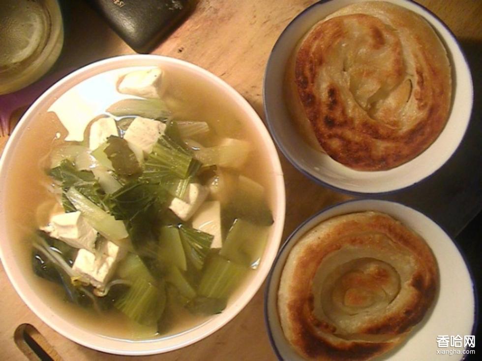 吊爐餅+豆腐湯一起吃在丹東很普遍。
