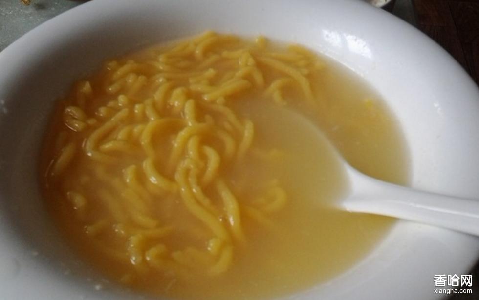 在食用時,鍋內(nèi)放清水燒開,待水燒開后,將成團(tuán)的湯面放入鍋里氽一下,等到表面呈半透明狀時,撈出置于盆內(nèi),用勺子或筷子將面團(tuán)打散,再用勺子取適量開水倒在湯面上,同時不斷攪拌,使湯面更多地熟化,產(chǎn)生足夠的粘度,攪拌均勻備用。