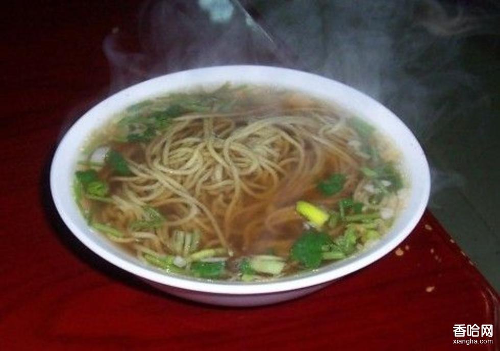 其主料為綠豆粉和白面,以八比二的比例配制而成。制作很簡單,雙合面配好拌勻后,用冷水?dāng)嚭?,再?jīng)特制的抿曲床壓。抿曲壓到沸水中立即漂起來,一根根清清爽爽,互不粘連卻繞成一團(tuán)。少時即熟,先把滾開的煮湯舀到已經(jīng)下好佐料的碗里,再把熟抿曲撈進(jìn)碗里,抿曲漂在碗里的面湯上了。所以才有了“漂抿曲”這一名稱。俗話說“漂抿曲吃湯”,漂抿曲最講究的是一碗鮮湯的調(diào)制,抿曲味道好不好,能否在碗里漂起來,這湯的制作最要緊。鮮湯的制作最見廚師的功力,蔥絲、姜末、香菜、醬油、陳醋、胡椒粉、食鹽、香油等各種調(diào)味品的比例在廚師的手下拿捏得恰到好處,抿曲撈進(jìn)碗里,一瓢滾熱的原湯趁勢澆進(jìn)去,抿曲就像在鍋里時一樣漂起來,綠色的芫荽和蔥花從抿曲的邊沿浮出來,襯托著泛綠的抿曲,看著都賞心悅目。