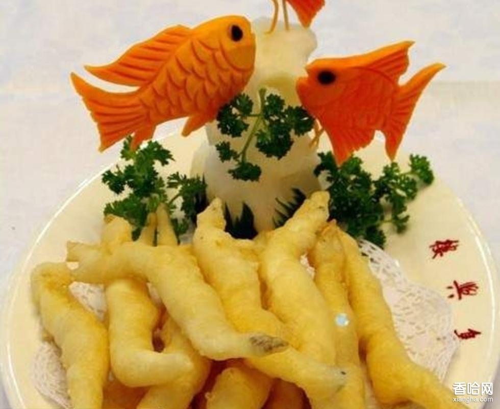 2、勺內(nèi)放入油,燒至九成熱時把里光彩塊放入炸一下?lián)瞥?,待油溫升高時再放入油內(nèi),炸熟呈火紅色撈出裝盤即成。
