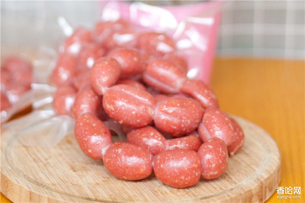3.灌制和風(fēng)干:腸衣在使用前,必須注意清洗,檢查是否合乎衛(wèi)生要求,最好是在灌腸前就過完水,不是在灌時進(jìn)行。肉餡灌入腸衣后,將腸用繩扎結(jié)成一個個紅棗樣的形狀,在成形的過程中注意使肉餡緊密而無間隙,防止腸內(nèi)形成空洞,如有空氣用針刺放出,然后把肉棗成串地掛在干燥通風(fēng)處風(fēng)干,春秋兩季用半個月時間左右,風(fēng)干程度達(dá)到指壓有彈力,腸皮干燥褶皺為宜。