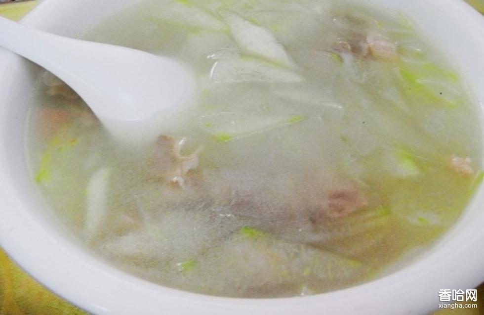 羊肉冬瓜湯是東北地區(qū)傳統(tǒng)的漢族名菜,屬于東北菜。這道湯色澤潔白,口味清馨,風(fēng)味鮮美,是一道好湯。羊肉酥爛,冬瓜入口即化;羊肉味甘、性熱,營養(yǎng)豐富,是冬季里滋補(bǔ)身體的佳品,而夏秋兩季食用容易上火;冬瓜性寒,和羊肉結(jié)合成湯,羊肉溫而不燥,冬瓜寒而不涼,這道湯達(dá)到了盡善盡美的境界。