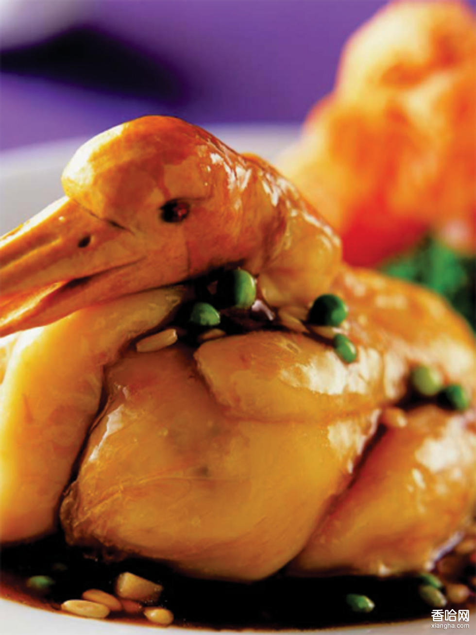 鞍山清蒸全鴨,是一道當(dāng)?shù)氐奶厣?。鴨形精巧,有骨有肉,紗布捆扎的痕跡酷似鴨皮,給人以真實感。鴨肉粑嫩,湯魚味美,清香四溢,令人垂涎。