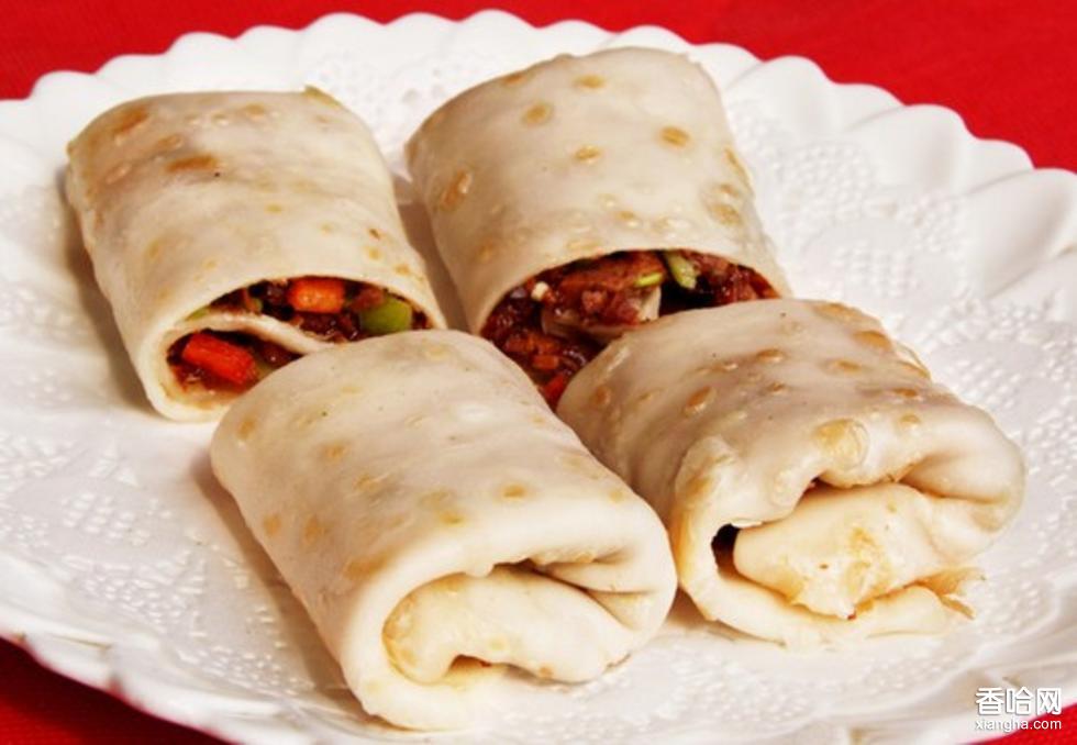“郭八火燒“作料齊全,制作精細(xì)。用科:以白面十斤計算,配半,香汕七兩半,花椒、小社香、食鹽適量。制作過程:先將白面用開水員三成,改用溫水把面探勻和成面塊,然后將田塊汗薄加料卷含,并打制成園厚餅型,放在爐鰲上翻烤,邊烤邊煉油,經(jīng)六分鐘,火烤兩面呈金黃色即好?!澳前嘶馃憋L(fēng)味獨特,層多且薄,每張均有二十五層至三十層,外表金黃瓜亮,呈現(xiàn)石榴行狀,吃起來發(fā)酥里筋,焦香可口,味香誘人。