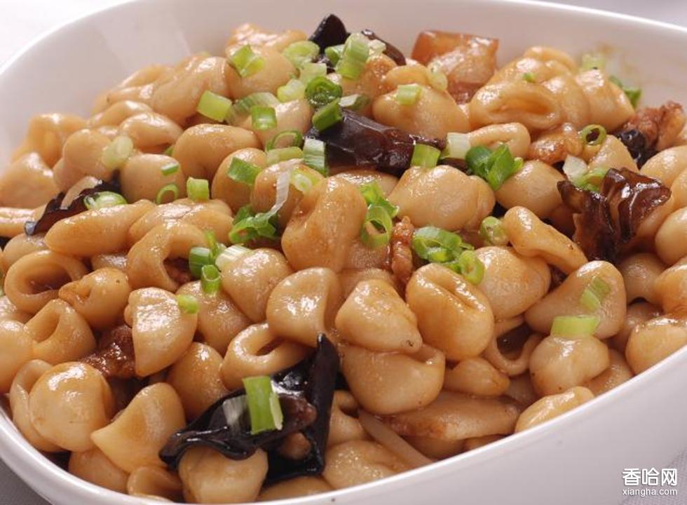 白面:用精粉一斤,水五兩。先將面粉倒進(jìn)盆里,冬季用溫水,春夏秋用冷水和起面,扎光揉好。放在面案上,撒上面粉,用面杖搟成兩三公分厚的薄片,切成多半公分大小的劑頭,再撒一次面粉,滾均勻。然后,兩手拇指相對(duì)按住面塊,一下一下往前推,推成形如貓耳朵狀即妥。鍋開時(shí)抖去面粉下到鍋里煮熟撈起,澆上各種葷索打鹵等澆頭,調(diào)以山西老陳醋,味香形美,可飽享口福。