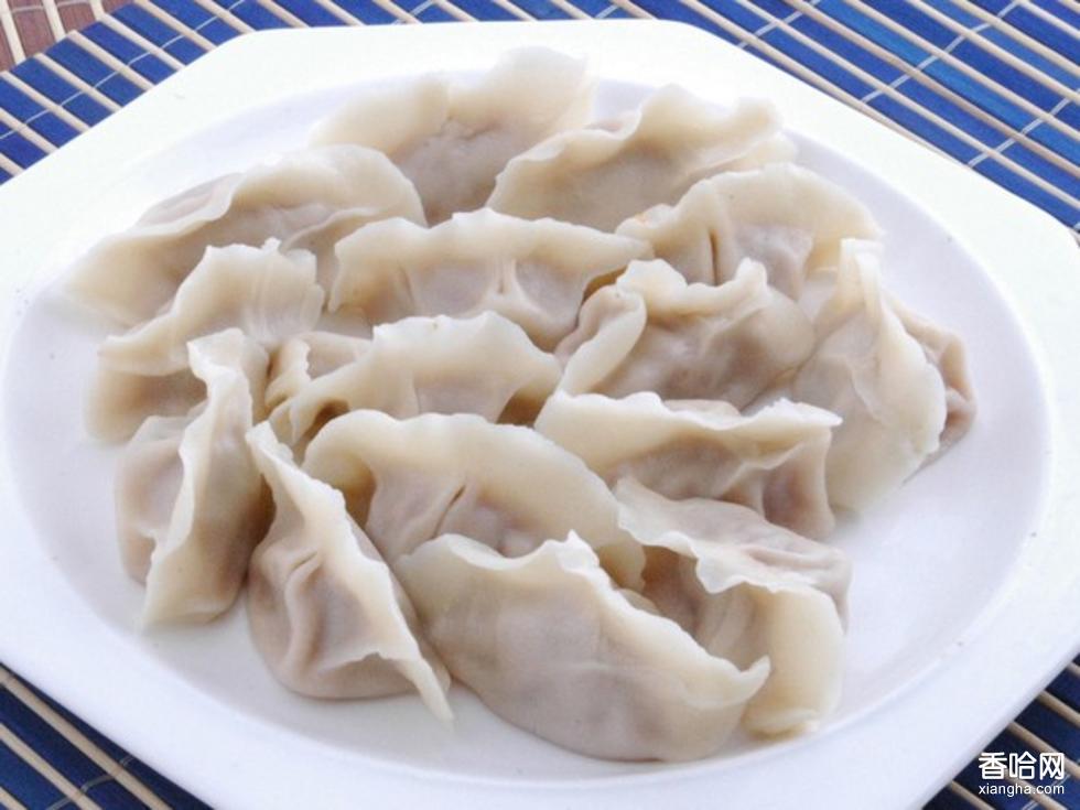 2.餃子粉加少鹽,水和勻,醒1個(gè)小時(shí),做成60個(gè)劑子,搟成大薄皮,分別包上羊肉餡,放開水中煮熟,食用時(shí)帶大蒜汁(大蒜汁即大蒜泥,醬油,醋,香油調(diào)勻)佐餐。