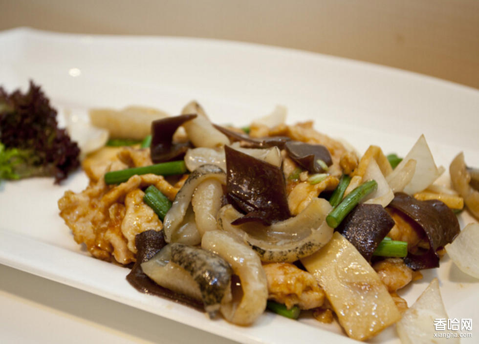 烹制方法:⒈ 扁擔肉(里脊肉)去凈薄膜、白筋和脂油,橫放在砧板上;⒉ 用平刀下片法把原料翻轉著片成0.33 厘米厚的長帶片;⒊ 然后平放在砧板上,再直刀斜切成長6.6厘米,寬4 厘米的斜方形片;⒋ 冬筍削皮,洗凈,切成與肉同樣大的片;⒌ 黃瓜洗凈,切成與肉同樣大的片;⒍ 水發(fā)木耳摘蒂,洗凈,大片的切小;⒎ 蔥去根須,洗凈,切青豆大的片;⒏ 姜去皮切姜米,蒜瓣去蒂切薄片;⒐ 把切好的肉片放碗中,加黃醬、花椒、醬油、鹽拌勻腌漬半小時;⒑ 冬筍片焯一下,清水過涼放小碗中;⒒ 冬筍碗中加入木耳和切好的黃瓜片、雞湯50毫升、黃酒、味精、醬油、濕淀粉調(diào)成芡汁;⒓ 炒鍋上旺火,放入豬油燒五成熱時下入浸好的肉片,迅速用筷子撥散,⒔ 炒鍋再放回火加入豬油,放入蔥片、姜末、蒜片煸出香味,扣入過好油的肉片,先用醋烹一下再倒入調(diào)好的芡汁,顛翻炒勻,淋豬油即可出鍋。
