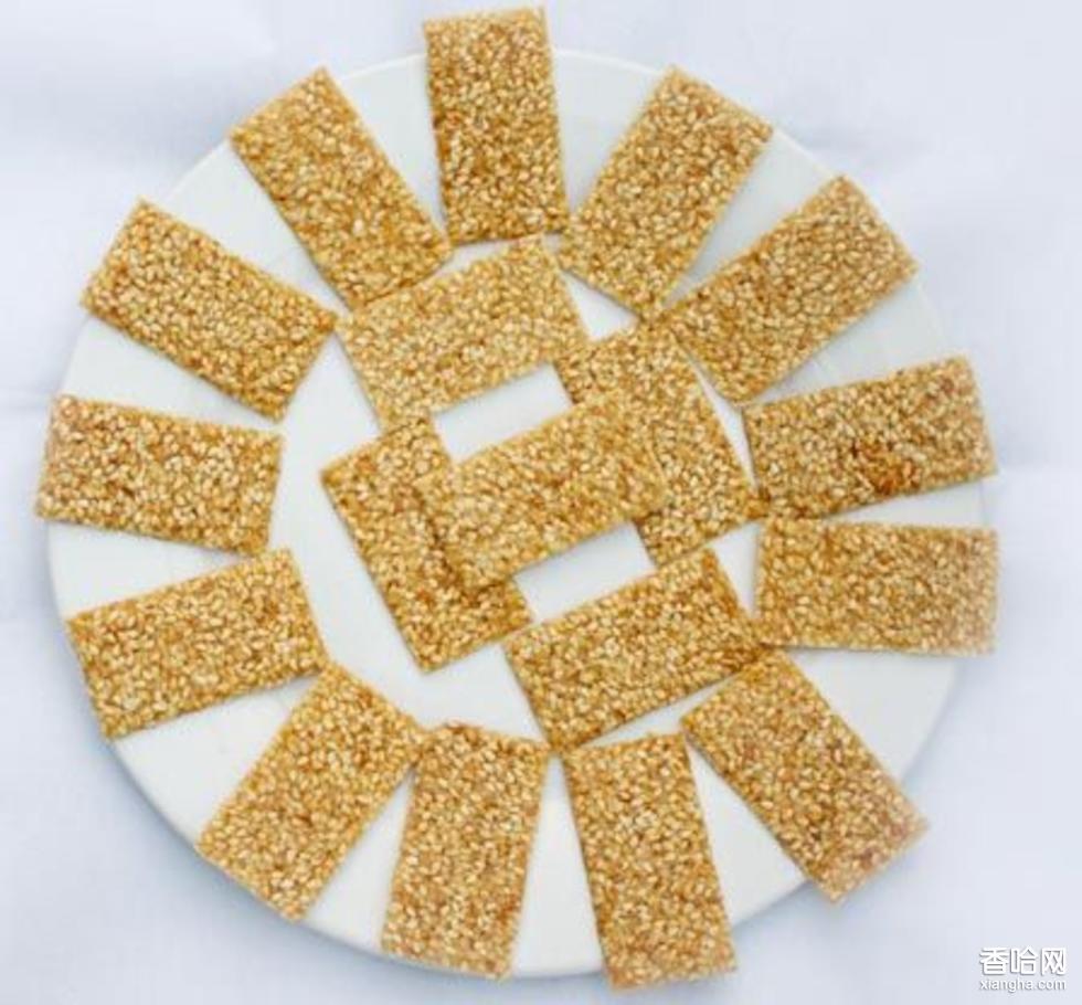 將上等面粉拌上糖,加入油、蜜水和成團狀,然后搟成皮、涂上蜂蜜、撒上芝麻,上鍋烘烙。成品色微黃,酥脆香甜,吃來滿口余香。