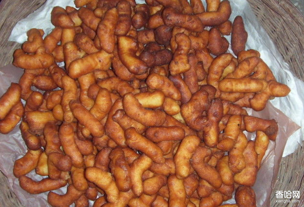 砍三刀,又名油食兒、油布袋,色呈金黃,綿甜利口,是流傳于山西太行山區(qū)的河北平山、井陘及山西五臺山一帶人春節(jié)期間的漢族面食小吃之一。因炸制時,為使麻油滲入其中,要在上面砍三刀,故稱“砍三刀”,又因其吃起來油香四溢,故又稱“油布袋”。