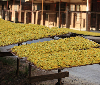 把新鮮的黃花菜用開水焯一遍,然后撈出來(lái)瀝干,接下來(lái)就可以直接放在太陽(yáng)底下曬了,曬過(guò)的網(wǎng)友建議直接在水泥地上曬比較好,因?yàn)樗嗟乇粫裰?,溫度?huì)升很高,讓黃花菜更容易曬干。而且大家一定要選擇在穩(wěn)定的大太陽(yáng)天來(lái)曬黃花菜,如果中途遭到雨淋可不是什么好事,黃花菜很容易就會(huì)壞的。