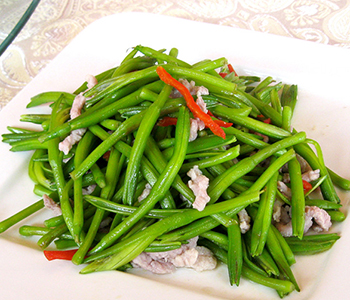 準(zhǔn)備材料:新鮮黃花菜、豬肉、腰果、辣椒、蔥、蒜