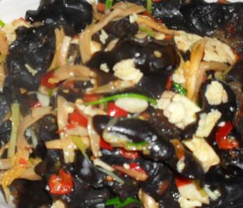 材料:黃花菜,黑木耳,雞蛋,鹽,糖,油,醬油,胡椒粉,料酒,香油