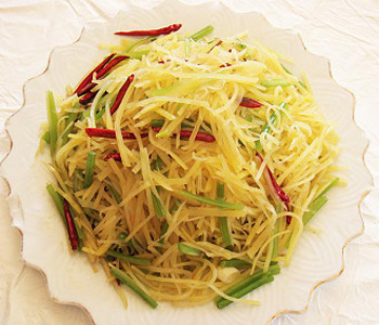 3、大火炒土豆絲。土豆含有一些有毒的生物堿,主要是茄堿和毛殼霉堿,但一般經(jīng)過(guò)170℃的高溫烹調(diào),有毒物質(zhì)就會(huì)分解。所以一定要煮熟透。而且要快速翻炒,不然土豆容易沾鍋。炒至半熟時(shí)要先給土豆淋上醬油。