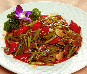 準備材料:主料:芹菜350克、輔料:豬肝75克