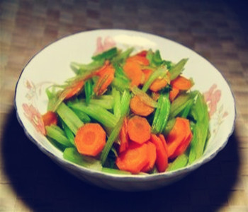 準(zhǔn)備材料:芹菜、胡蘿卜、食鹽、調(diào)和油