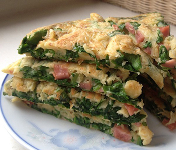 而雞蛋的營養(yǎng),相信大家也都耳熟能詳了,雞蛋含豐富的優(yōu)質(zhì)蛋白,每百克雞蛋含12.7克蛋白質(zhì),含脂肪11.6克,大多集中在蛋黃中,以不飽和脂肪酸為多,脂肪呈乳融狀,很容易被人體吸收。雞蛋還有其它重要的微營養(yǎng)素,如鉀、鈉、鎂、磷,特別是蛋黃中的鐵質(zhì)達(dá)7毫克/100克。所以,這么有營養(yǎng)的兩種食材結(jié)合,芹菜葉子餅就是一道營養(yǎng)價值十分高的佳肴喔!芹菜性涼,而雞蛋偏溫,二者中和過后,營養(yǎng)美味一級棒喔!這里再給大家一個小貼士:芹菜有降血壓作用,故血壓偏低者慎用喔;另打算生育的男性應(yīng)注意適量少食。