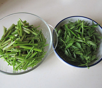 1、將野芹菜洗凈,切碎一點裝大碗里。(可以稍微切碎一點,口感更好哦?。┻@里提醒大家,很多人都不喜歡吃芹菜葉子,甚至有芹菜葉子不能吃的說法,實際上芹菜葉子比芹菜莖的營養(yǎng)價值還要高哦!所以大家做的時候可不要丟了這么營養(yǎng)的芹菜葉子??!