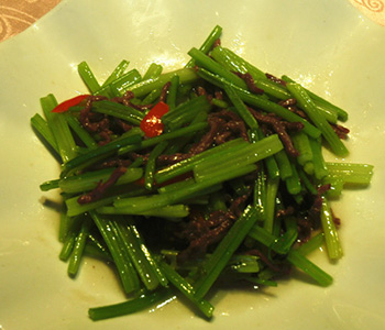 4、保留芹菜葉,可是芹菜的香味更濃哦!而且芹菜葉的營(yíng)養(yǎng)價(jià)值比芹菜莖高呢!不少家庭卻把芹菜葉扔掉,其實(shí)這是極不科學(xué)的哦!所以做這道菜的時(shí)候可要注意了!