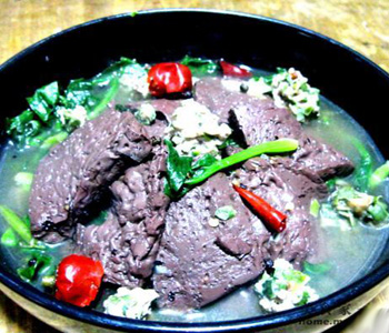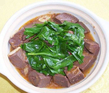 豬血,經(jīng)常在超市里以血豆腐的形式出現(xiàn)在我們面前,它性平、味成,是理想的補(bǔ)血佳品。豬血以色正新鮮、無夾雜豬毛和雜質(zhì)、質(zhì)地柔軟、非病豬之血為優(yōu)?!侗静菥V目》記載豬血可“補(bǔ)鐵、止血、解毒”。中醫(yī)認(rèn)為,豬血是養(yǎng)血之寶。豬血中的血漿蛋白被人體內(nèi)的胃酸分解后,可產(chǎn)生一種解毒、清腸的分解物,能夠與侵入人體內(nèi)的粉塵、有害金屬微粒發(fā)生化學(xué)反應(yīng),使毒素易于排出體外。豬血中含有的鈷是防止人體內(nèi)惡性腫瘤生長(zhǎng)的重要微量元素,這在其他食品中是難以獲得的。