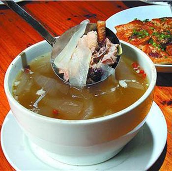 1、先燒開雞湯,放入上述材料,文火煮上20分鐘左右。