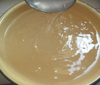 5、約經(jīng)24小時(shí)泡,即可在石磨或鋼磨上磨成漿汁,用白布濾之,過(guò)濾后的渣再磨一次,并進(jìn)行過(guò)濾,以充分提取淀粉。
