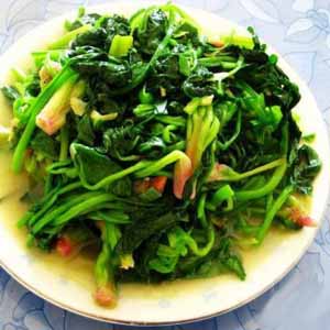 菠菜500克,精鹽7克,蒜泥10克,熟花生油 50克