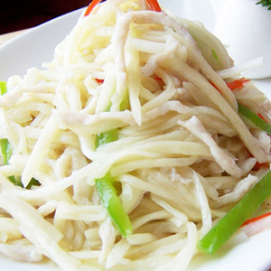 3、把茭白切成絲。