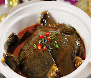 4、 甲魚的周身均可食用,特別是甲魚四周下垂的柔軟部分,稱為“鱉裙”,其味道鮮美無比,別具一格,是甲魚周身最鮮、最嫩、最好吃的部分,甲魚肉極易消化吸收,產(chǎn)生熱量較高,營養(yǎng)極為豐富,一般多做成“甲魚湯”飲用,又可做成美味的佳肴,供人享用。