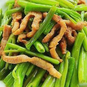 8、倒入準(zhǔn)備好的空心菜梗翻炒。