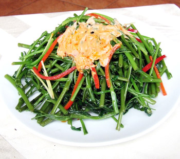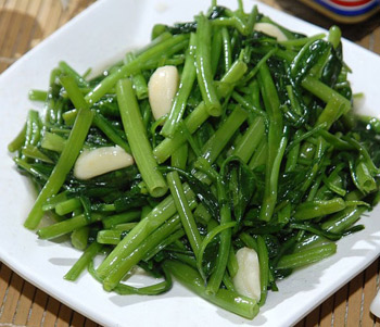 材料:空心菜、鹽、蒜、雞精、醋、辣椒