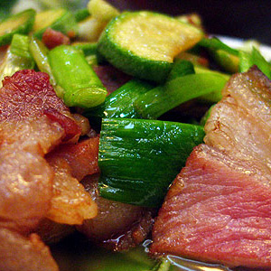 4、可以搭配其他食物炒。像西葫蘆燴西紅柿這道家常菜,紅紅綠綠的看著就有胃口。還有西葫蘆炒木耳、剁椒培根炒西葫蘆、西葫蘆炒肉片、西葫蘆炒豆干等等都是非常不錯的家常菜。