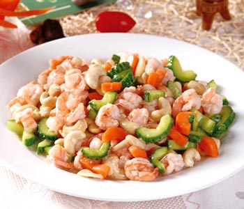 蝦仁是典型的高蛋白、低脂肪食物,易于吸收,具有補(bǔ)腎壯陽、健胃的功效,腰果營養(yǎng)十分豐富,香美可口,并有一定的食療作用,它可潤腸通便,潤膚美容,延緩衰老,補(bǔ)腎之功效。經(jīng)常食用可以提高機(jī)體抗病能力。黃瓜夏天宜多吃,以補(bǔ)充水分及流失的無機(jī)鹽。