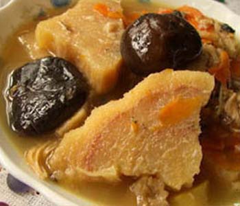 原料:鮮粉葛,鯪魚,瘦豬肉,蜜棗,陳皮,姜,鹽。