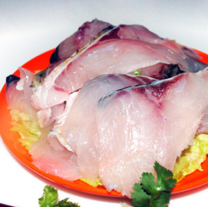 2、 新鮮的鰱魚去鱗,從肚子切開,取出內(nèi)臟、魚鰓和黑色膜,洗凈;