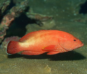 (2)赤點石斑魚背鰭Ⅺ,16條,背鰭基底具一黑斑,體棕褐色,頭、體、奇鰭有許多橙黃色斑(浸制標本變白色)。暖溫性中、下層魚類。成魚攝食魚、蝦、蟹。雌雄同體,雌性先成熟,大部分3齡性成熟,體長231-295毫米時,從雌性轉變?yōu)樾坌?。大部?齡魚(個別為5齡魚)體長340-400毫米,絕對生殖力為10萬—25萬粒,產卵期為5-9月,盛期為5-6月。肉鮮美,可供出口,是名貴魚類,現(xiàn)已進行人工繁殖,是網(wǎng)箱及淺海養(yǎng)殖對象。分布于我國臺灣,東海、南海,以及印度和日本。