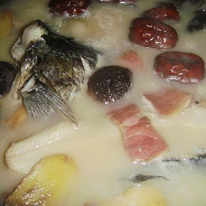 如果不是給體弱的人喝,可以整條入湯。先將魚(yú)兩面稍稍用油煎一下,魚(yú)煎好后放生姜、料酒爆香。加冷水大火燒開(kāi),水燒開(kāi)前千萬(wàn)別翻動(dòng)魚(yú)身。小火慢煮至湯白時(shí)加一點(diǎn)醋,再倒入鍋內(nèi)熬煮。